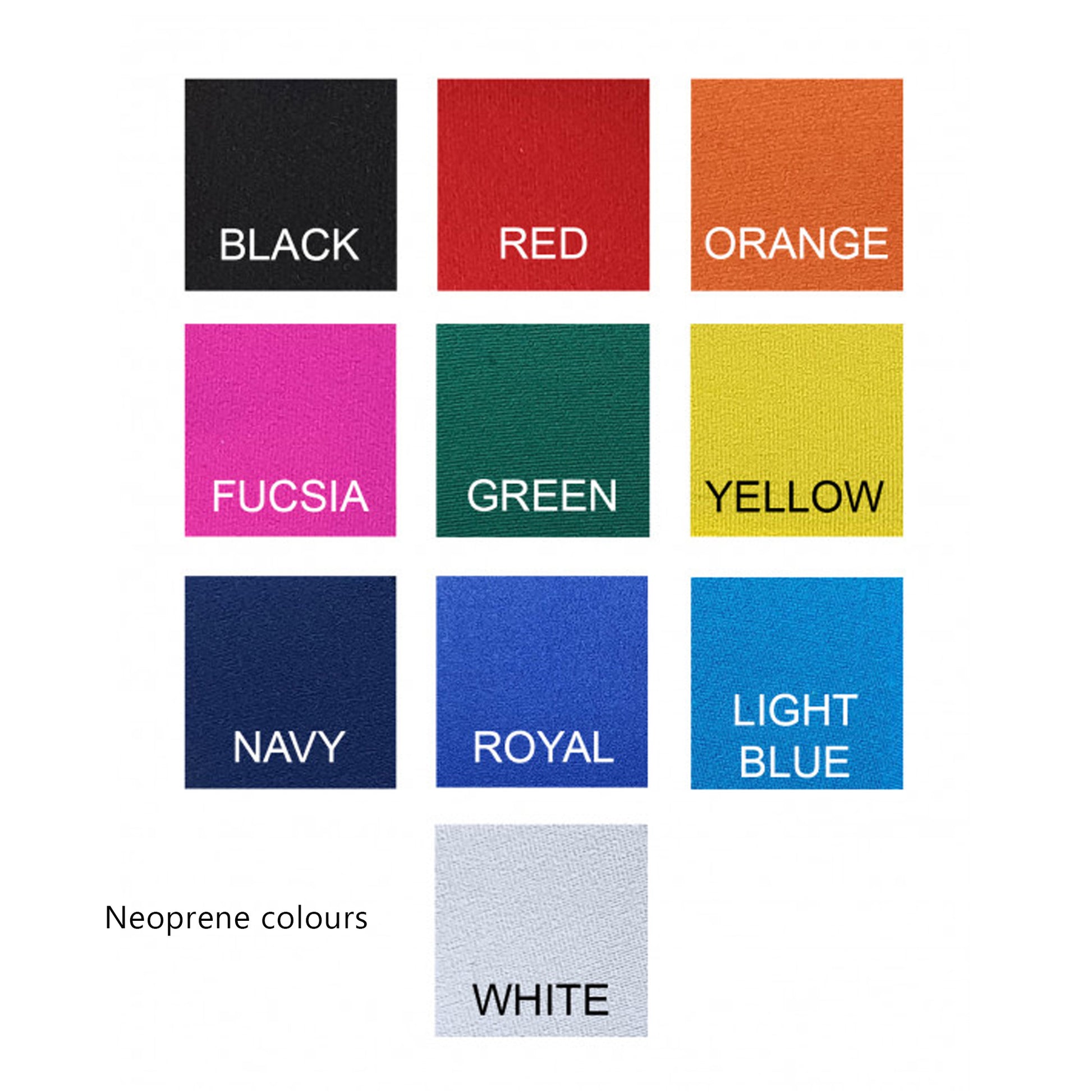 Choose between 10 neoprene colours (pictured) for the girth itself and 16 nylon loop colours for the buckle straps.